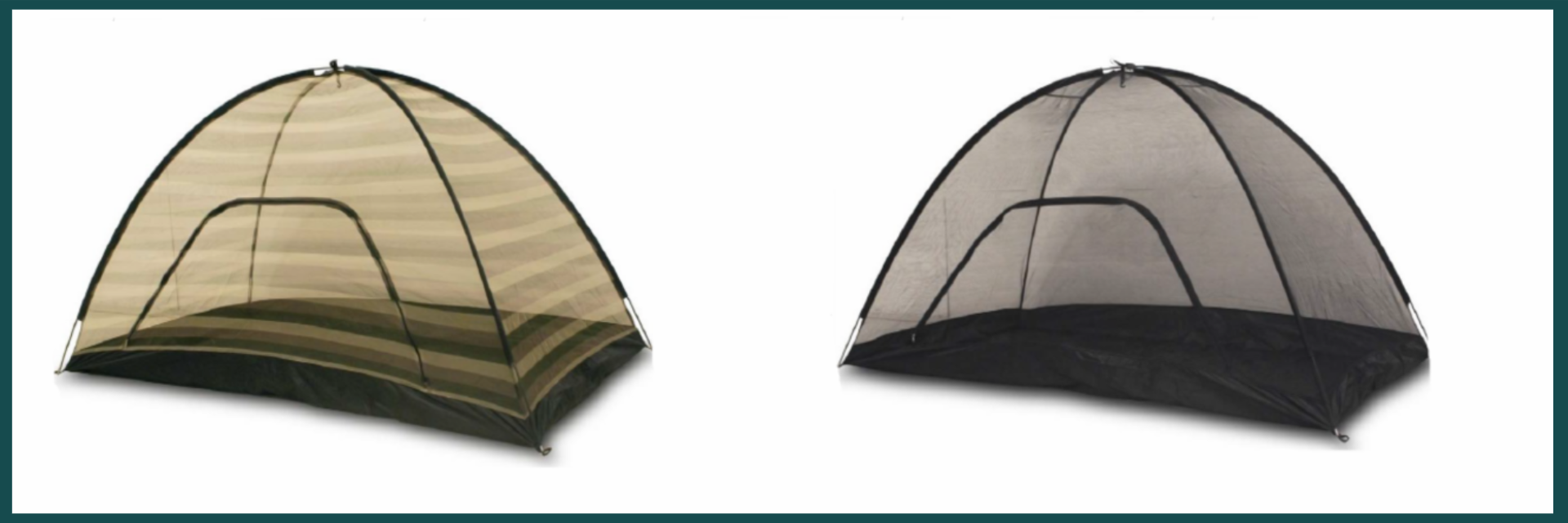Reliefnet Dome Nets is available in three color choices: dark green, black and in a camouflage striped pattern (alternating tan, dark green and brown stripes).